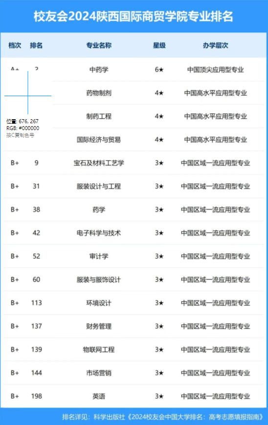 学校现设35个本科专业。其中,国家级、省级一流本科专业建设点7个;在2024年校友会排名中,学校中药学专业迈入中国顶尖应用型专业行列,国际经济与贸易、药物制剂等3个专业入选中国高水平应用型专业行列,宝石及材料工艺学、服装与服饰设计、药学、电子科学与技术、审计学、环境设计、财务管理、物联网工程、市场营销、英语等10个专业入围中国区域一流应用型专业行列。