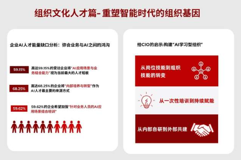 报告还提出了构建“AI学习型组织”的理念。企业不再将 AI 能力局限于技术团队,而是推动AI素养向业务、管理团队乃至全员延伸,实现从岗位技能到组织技能的转变。这种组织变革使企业能够充分调动各方资源,形成协同创新的强大合力,加速AI在企业内部的落地与推广。