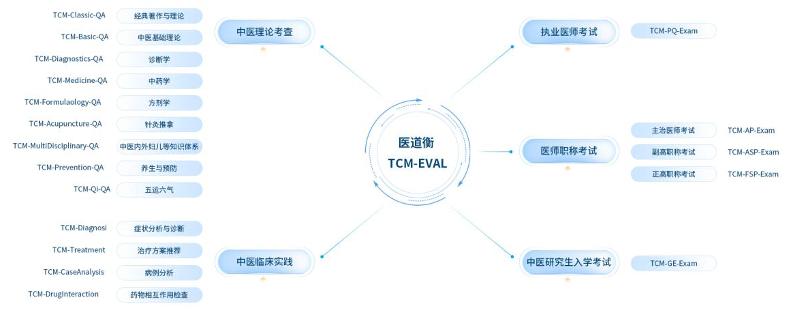 TCM-Eval设置中医执业医师考试、中医医师职称考试、中医研究生入学考试、中医理论专题问答、中医临床实践等5大模块,共18个数据集。其中考试类数据集由权威中医专家团队根据国家医考大纲命题,中医理论问答数据集由权威中医专家团队根据中医专业教科书等通过国家认证的教材构建,中医临床实践数据集来源于真实病例并经过匿名化处理。
