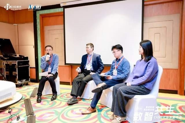 在医药健康专场活动的圆桌对话环节,某医疗设备上市公司CIO,第1届华南CIO班学员、医药健康专委会副会长赵春喜主持了对话。凯西医药ICT Leader、CIO时代华东06班班长高阳,默克中国IT Business Partner、CIO时代华东01班班委路蕴莹,葛兰素Sr manager GRC、CIO时代华东09班学员陈龚旖参与了对话。