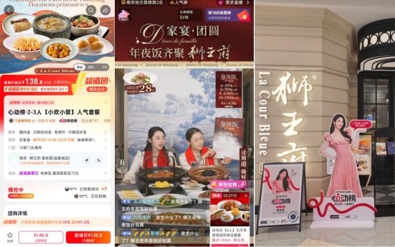 在抖音运营中,狮王府构建了视觉美学+文化故事的内容矩阵:通过菜品工艺特写、后厨纪实及节日内容,突出匠心与淮扬技法。同时形成完整的直播+转化链路,每周开设专场放价做品牌周播,培养会员心智;每月打造品牌大场,峰值突破200万。配合上线心动榜餐厅专属套餐并全渠道推售,同步确保活动物料100%覆盖,带动扫码GMV环比提升200%以上,实现到店客流与曝光的双向提升。