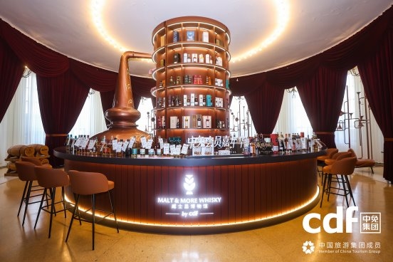 中免集团倾情打造的威士忌吧涵盖40个品牌的102款酒品,其中不乏中免独家产品。吧台延续海口国际免税城威士忌博物馆的设计基因,旨在为威士忌爱好者及广大中免会员打造一处专属的沉浸式威士忌文化体验场域,让参与者深度感受威士忌的酿造文化、品鉴文化与社交文化,让文化体验成为连接品牌与会员的坚实桥梁。