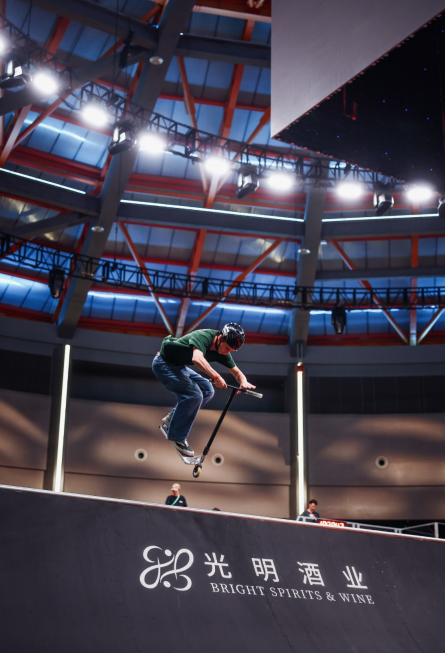 2025年FISE上海站不止白天的精彩,运营时间更延长至22点结束,为此FISE团队带来了夜场大秀——“光明酒业”人字坡狂欢赛。作为FISE法国蒙彼利埃站的标志性夜赛设施,它首次来到上海,将在自由式小轮车、极限滑板车、极限轮滑及滑板项目中展开角逐,选手们都将在人字坡两侧的 U 型池上尽情释放创意,用一系列高难度动作点亮西岸的夜空。