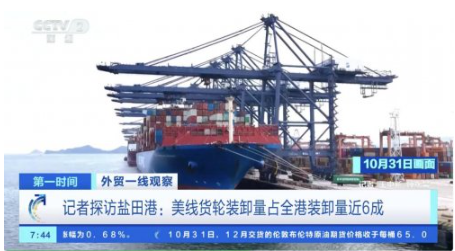 (盐田港10月31日现场画面,来源:央视财经11月1日报道)