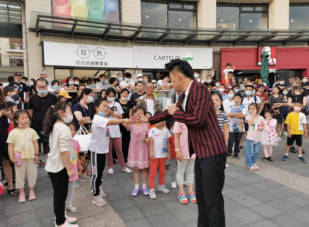 百联青浦奥特莱斯广场:魔术师与现场观众互动图