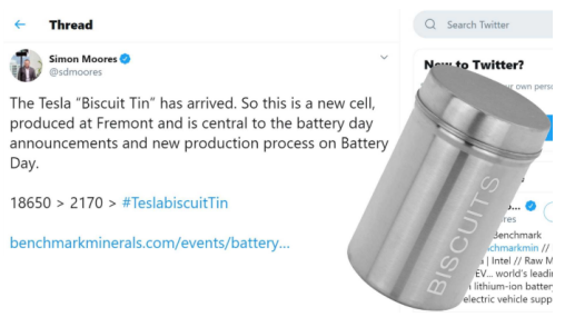 “特斯拉‘饼干罐(电池)’已经到货。这是在弗里蒙特生产的新电池,对于电池日宣告和电池的新生产流程至关重要。” 任职电池原材料咨询公司的西蒙·摩尔在推特上如是说。同时,西蒙·摩尔还猜测,这些电池将在特斯拉工厂之一的奥斯汀超级工厂生产,未来将用于CyberTruck皮卡、Semi卡车,以及Model 3、Model Y等车型。据悉,特斯拉拟将使用的这种新电池的制造成本,能够降低至100美元/度(约676元/度),相较国内普遍1100元/度以上而言,具有巨大的成本优势。