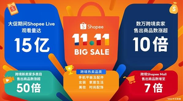 作为一年一度的网购盛宴,今年11.11大促Shopee持续以多重福利回馈消费者,并通过Shopee Live、Shopee Prizes等娱乐化方式为消费者打造轻松愉悦的购物体验。大促期间Shopee Live观看量破15亿,激发跨境店铺消费者购买力提升5倍。