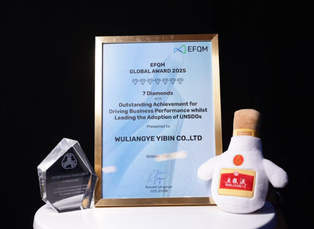 近日,EFQM可持续绩效大会暨2025全球奖颁奖典礼在西班牙举办。五粮液凭借在卓越绩效管理与可持续发展领域的突破性实践,以中国企业创奖以来最高分斩获EFQM全球奖(七钻)认证,获得了EFQM卓越认可体系中的最高荣誉。同时,荣获“联合国可持续发展目标践行与企业绩效卓越奖”单项奖。