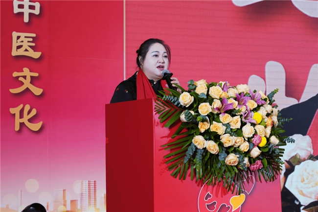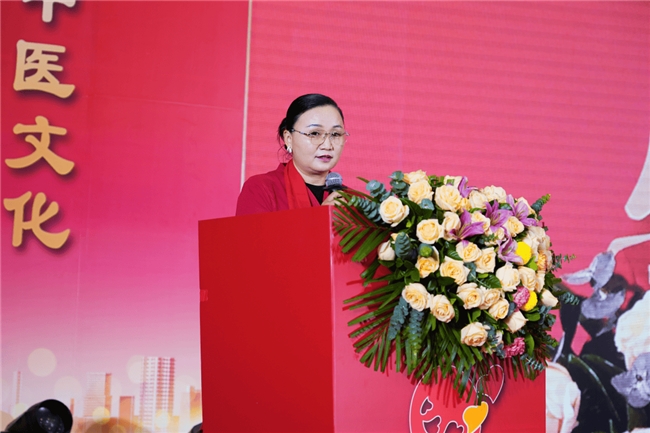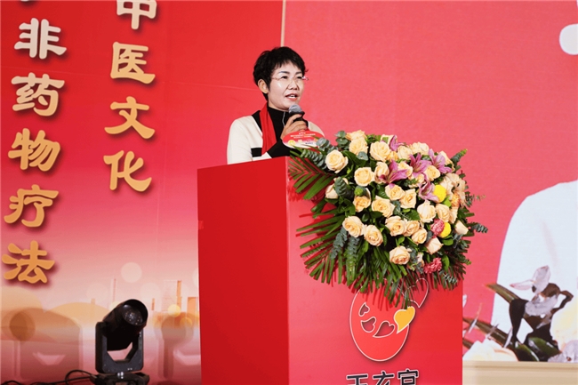 图为世界中医非药物疗法联合会主席、著名的《中医革命》作者杨蜀琴教授致辞